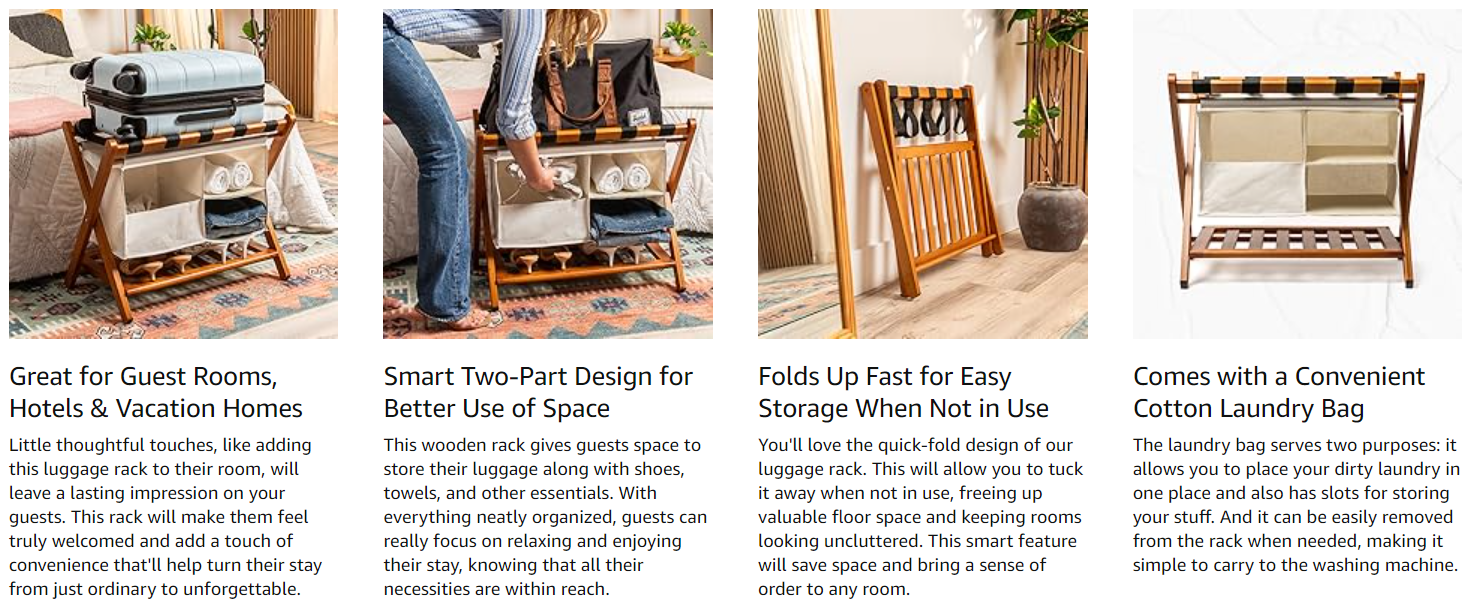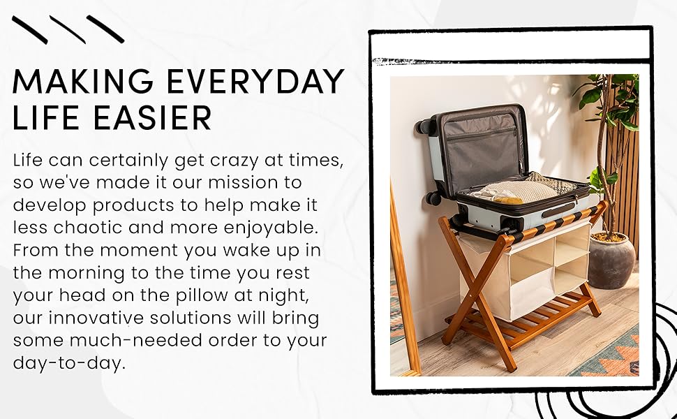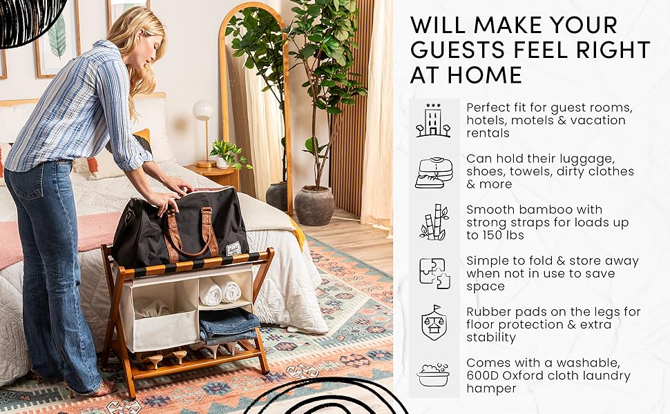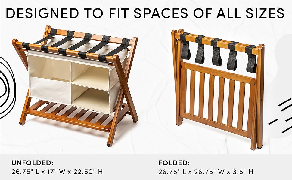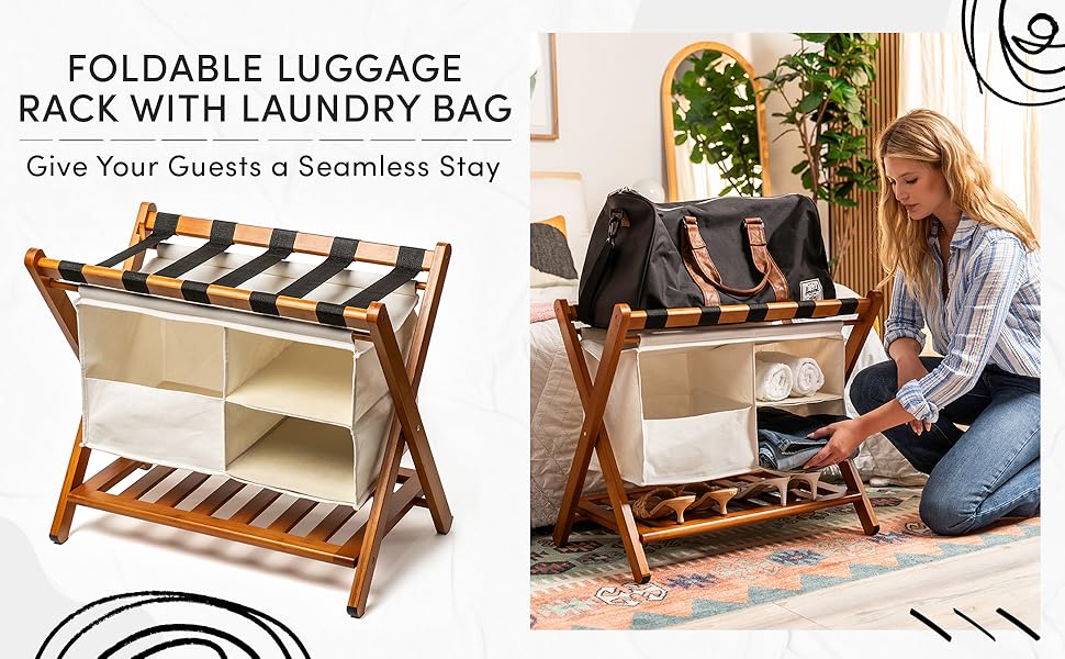 DomeNest Folding Luggage Rack for Guest Room with Laundry Bag